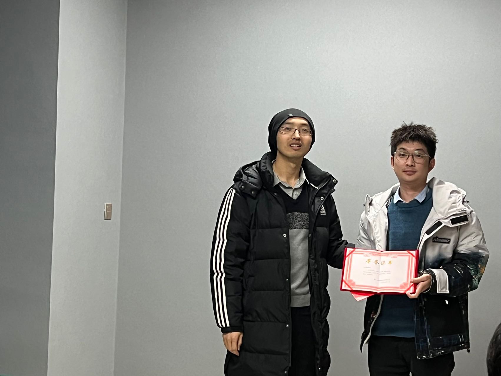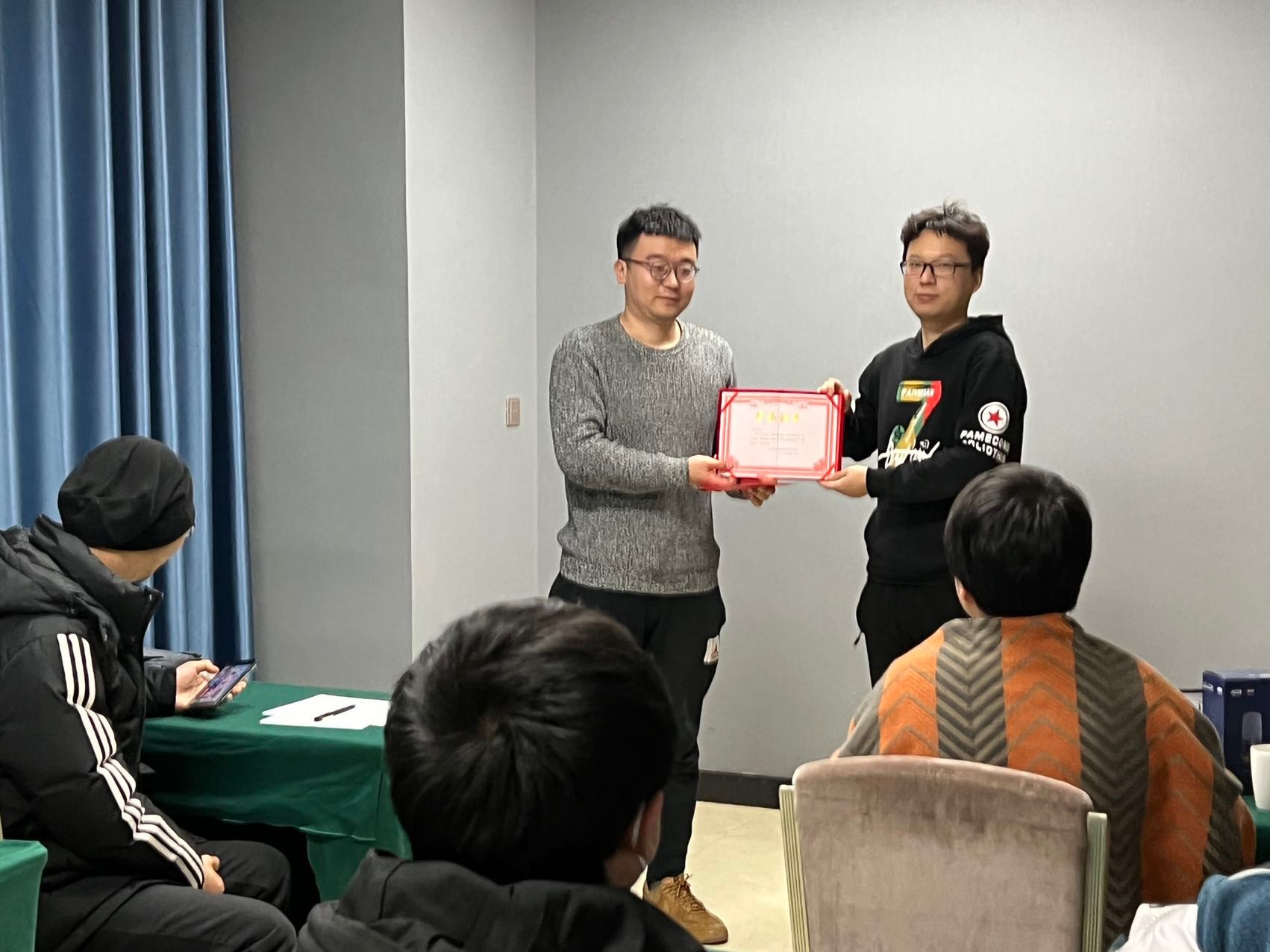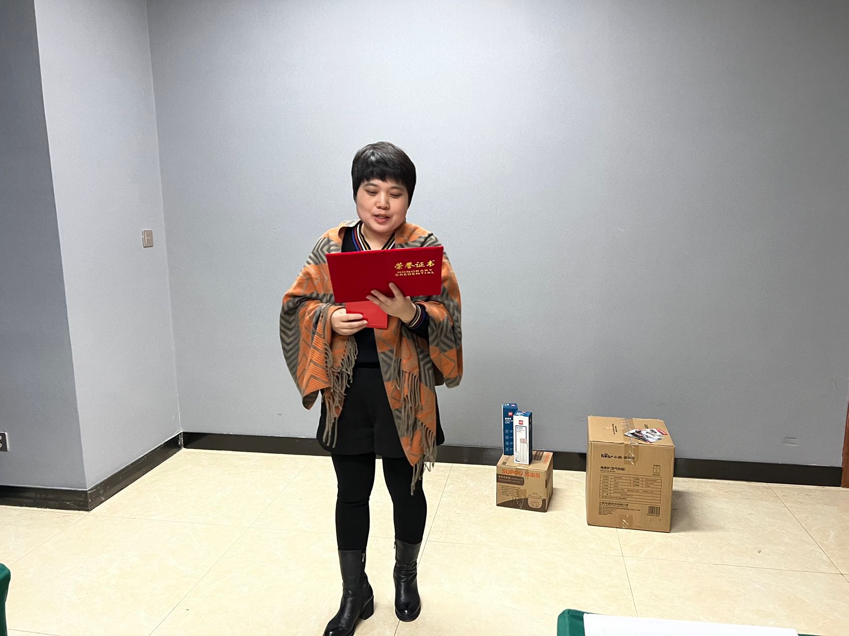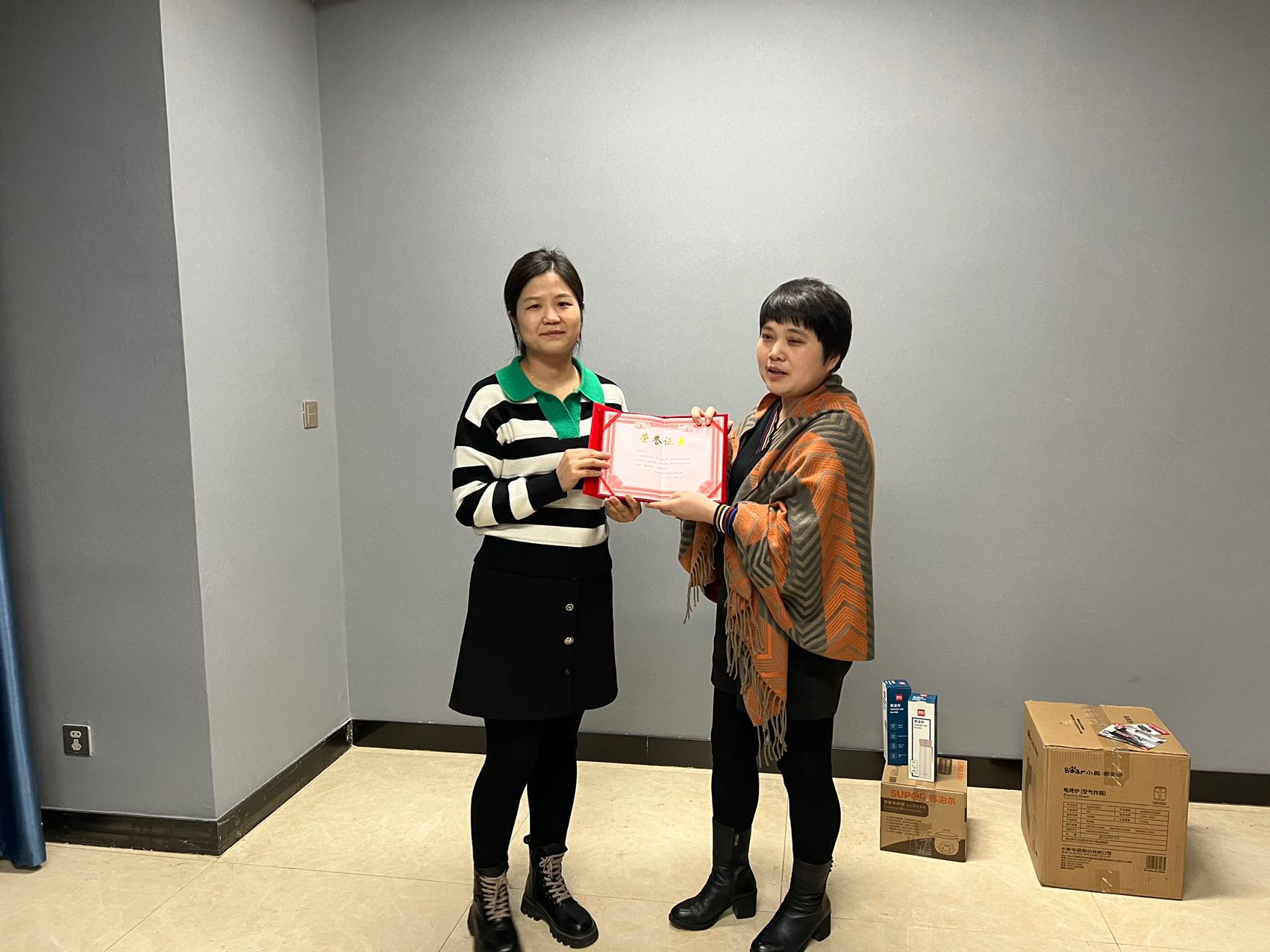 陈经理为商务部孙坤颁发先进个人荣誉证书